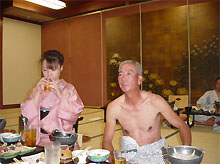 ■2004年 青森旅行記 十和田 奥入瀬編(6/26,27)■![]() 浅虫温泉 海扇閣にて(添乗員の対馬御大と)