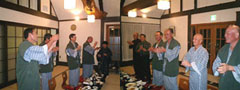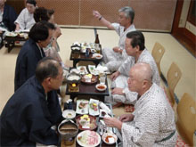 | 対馬先輩より檄。 今回の青森への親睦旅行を大いに喜ばれた対馬先輩より峻空会員に対し御自身のこれまでの熱き空手人生を通して今後への檄が飛ばされました。 「何時でも、何処にいても駒澤の空手部を卒業した者同士が和を崩すことなく前向きに参加することに努力していかなければならない。その意味においては遊びに見えるこの親睦の旅などは大きな意義を感じるし、年代を超えて和を作るきっかけでもある。自分も今後は出来る限りの努力を惜しまないし来年のこの旅行にも参加する。」 と、強い口調で語られ、この事を一人でも多くの皆に知って欲しいし理解して欲しい、機会あるごとにこれを伝えるようにとの命を受けました。クリックすると大きく表示されます |