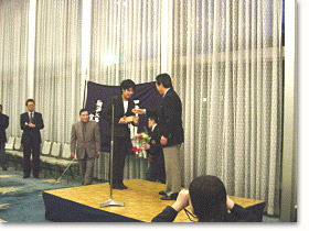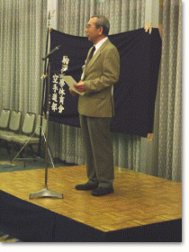 ![]() 尚、優勝の三名には峻空会よりの記念品と花束が東 会長から贈られました。 |