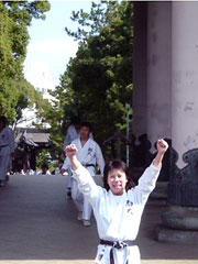 年々参加者の数も増し大勢のOB,OG、そして次世代の駒大空手部を担うだろう子供たちも加わって盛大に行われた今年の総持寺行軍。 当日は、快晴とまではいかなかったものの天候にも恵まれ、10時ちょうどに駒沢公園正門前をスタートした一行はかなりのハイペースで進み、例年のようなガス橋での小休止も取らぬまま一気に駆け抜る勢いは今年の活躍振りを暗示するかのような意気込みを感じさせてくれた。 |