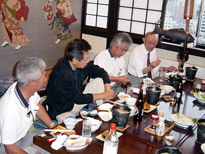 | 昨年の國井、石川、高橋先輩ら41年組の「ゴージャス山口県の旅」の影響も多分に受け、われ等42年組みも俗に言う還暦なるものをむかえ人生の半ば・・・!! いや終盤に差し掛かった記念の顔見せ会をやろうと企てたが、何分にも同期9人という少数民族のうえ、音信不通者も数名いるし多忙のため参加できずの返事も届き結局のところ学生時代に毎晩のみ明かしていた和島、水野、福田、それに吉村の4人だけの集まりになった。 場所をどこにするか悩む中、水野、福田の住む愛媛にしようと話していると家内から「それでは二人がつまらないでしょう、京都にでも行けば」のアドバイス、しかし、いくら京都が寺だらけとは言え三人の高僧たち(頭の光ぐあいが)と京の都を酔って歩くにはいささか勇気が必要と改めて逃げるように道後温泉にした。 ホテルの手配など、現地愛媛の高僧は2人揃ってだいぶ浮世離れした方たちで、どうも安心できずに二年後輩、松山在住の森君にそのあたりを頼み和島と二人で羽田から二泊三日の旅に出た。 行き着いた先が一昨年の「峻空会旅行」の折に当初予約しながらもいささか不具合が生じてキャンセルした道後の高級ホテル 茶玻瑠(ちゃはる)が宿というのも何かの縁なのだろうか。 森を加えた五人の宴会は一瞬にして40年の時間が逆戻りし、新町や三軒茶屋で飲んだ暮れたあの日と何も変わらぬ進歩の無さには我ながらおかしかったがそれが仲間と言うものなのだろう。 二次会はコンパニオン嬢を同伴して松山市内まで足を伸ばし福田行きつけのフイリッピンクラブで時の経つのも忘れて夜半過ぎまで飲み明かした。 |