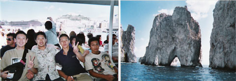| 佐田岬灯台を境に、右からは瀬戸内の潮が流れ込み、左から宇和海の潮がそれにぶつかり、ものすごく速い潮流となりよく身の締まった魚の漁場として名高いところのようだ。 豊予海と呼ばれるこの海域は遠くに見える対岸が九州の佐賀関、同じこの漁場の九州側で獲れば高名な関アジ、関サバ、こちらであがれば岬アジ、岬サバとしてこれまた超貴重品だ。 ちなみに岬をハナと読むそうで商品名はハナアジ、ハナサバとして世に出ているらしい。 案の定意気も絶え絶えに車まで戻ると先ほどの老婆が何だか小さな手押し車を押しながら笑顔で迎えてくれた。 そして突然に・・・なァ〜こうていってャ ミカンもあるで・・・ おばあさんの先ほどの笑顔は帰りのときの為の営業笑いであったのだが、それでもまったくいやみも無く和島が海草の一種のアオサを買う破目になった。 かくして我等42年組の還暦記念の旅は西へ西へとまるで西遊記のようであった。 三蔵法師は誰で、孫悟空が誰? 猪八戒は?、サゴジョウは? あえて誰が何だかは云わない事にする、それでも私なりにはそれぞれがいたってはまり役であるような気がしているが諸兄にはどう思われるだろうかお聞きしたいものだ。 5年後の再会を約束して西遊記は幕を閉じる事にしたが、今度はもっと一人でも多い仲間と会いたいものだと期待する。 ながながと私的な事にお付き合いただき心より感謝します、そして小松原君、来年は君たちだね 少し早めに連絡して是非とも盛大にやってください還暦のたびを。 |