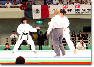 かってメキシコでの第一回世界大会を制した恩師大石武士直伝か、この一本にかけた奥家の飛び込みは、まるで全盛時の師範の空手を彷彿とさせる凄みは、当時を知る者にとって思わず全身にザワメキを覚える程の勝負の極みだった。
