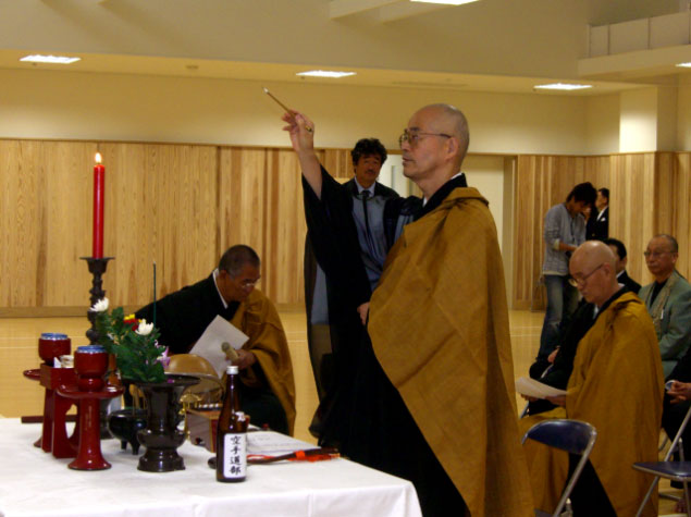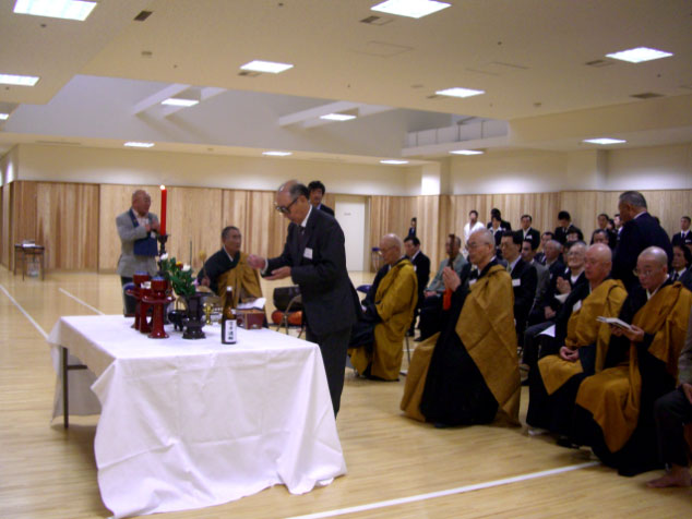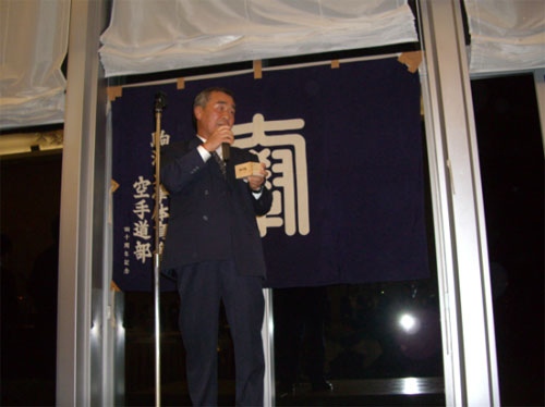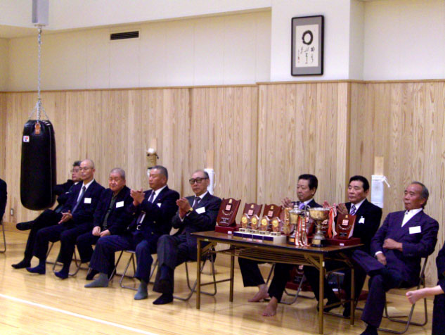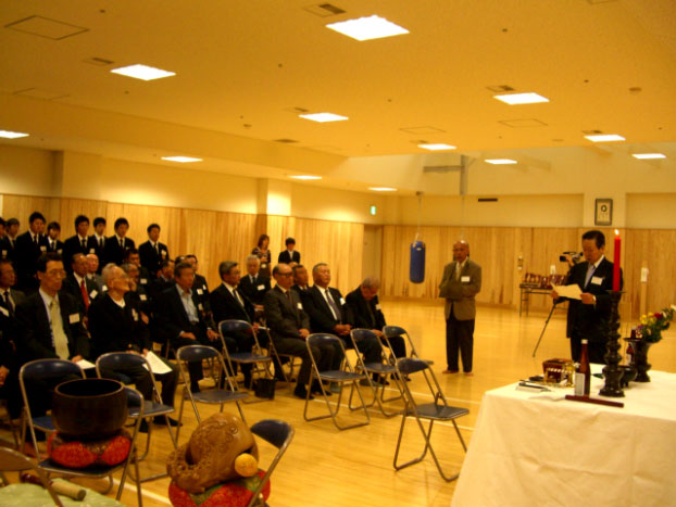 午前中の第一部はこの春竣工した新道場のお披露目と道場開きが行われ、60周年の記念の一環として峻空会より寄贈した「武士の守護神」として古より信仰の的とされてきた