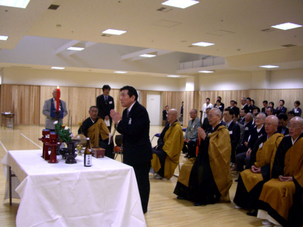 摩利支天像に魂を入れる「点點供養」(てんげんくよう)並びに昨年102歳のご長寿をまっとうされた初代部長の水野弘元先生と、残念ながらこれまでに他界した24名の拳友のご冥福を祈って「物故者の供養」が行われ故人を偲んで全員で焼香することが出来ました。 |