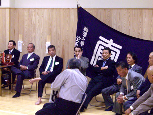 | 第二部の祝賀会は場所を大学近くの深沢校舎に移して益々参加者も増え、まさに老若男女が入り乱れて駒沢の長いながい歴史を分かち合った。 |