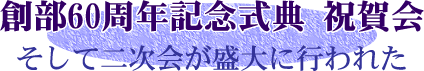 予てより報告いたしておりました創部60周年の記念式典と祝賀会が10月14日、予想をはるかに上回るご参加をいただき盛大に挙行された。
