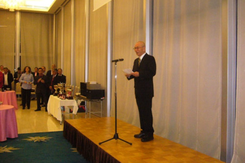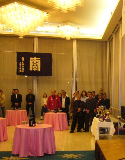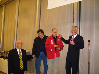 大石師範より、井上・内藤両指導員の海外への指導のご活躍とご苦労が披露された。「3ヶ月間行ってこい」が何と37年・44年の月日が流れました。