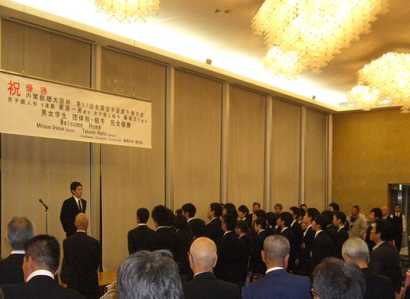この度の祝勝会には、平日にもかかわらず多くの皆様方の御参集を賜わり誠にありがとうございました。次は是非とも全日本大学優勝祝勝会でお会いしたいですね。