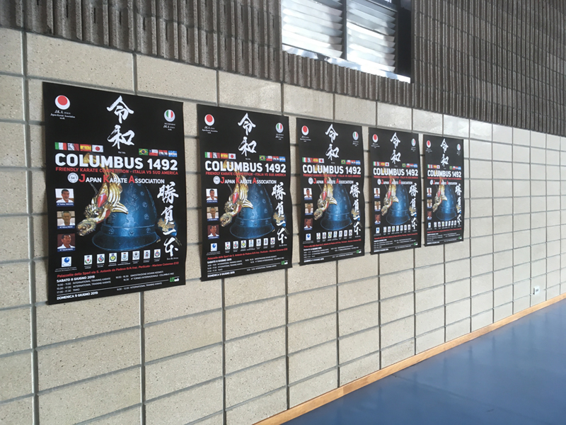 18:00から、混成チームでの親善試合が行われる。デモンストレーションとして、和太鼓の演奏から始まり、イタリアの空手関係者(3人の女の子・3人の女性)と一杉、末次で、町田先生の詩吟に合わせて、観空大の演武を行う。