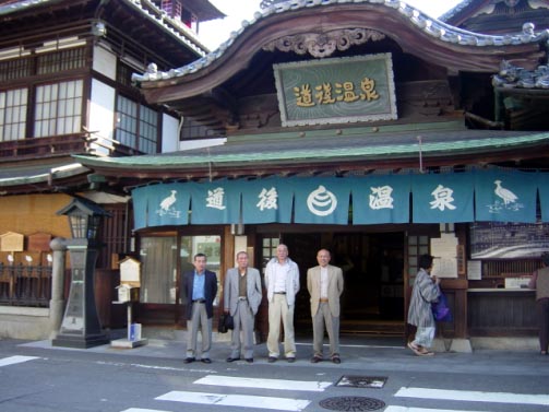 | 昨年の國井、石川、高橋先輩ら41年組の「ゴージャス山口県の旅」の影響も多分に受け、われ等42年組みも俗に言う還暦なるものをむかえ人生の半ば・・・!! いや終盤に差し掛かった記念の顔見せ会をやろうと企てたが、何分にも同期9人という少数民族のうえ、音信不通者も数名いるし多忙のため参加できずの返事も届き結局のところ学生時代に毎晩のみ明かしていた和島、水野、福田、それに吉村の4人だけの集まりになった。 場所をどこにするか悩む中、水野、福田の住む愛媛にしようと話していると家内から「それでは二人がつまらないでしょう、京都にでも行けば」のアドバイス、しかし、いくら京都が寺だらけとは言え三人の高僧たち(頭の光ぐあいが)と京の都を酔って歩くにはいささか勇気が必要と改めて逃げるように道後温泉にした。 ホテルの手配など、現地愛媛の高僧は2人揃ってだいぶ浮世離れした方たちで、どうも安心できずに二年後輩、松山在住の森君にそのあたりを頼み和島と二人で羽田から二泊三日の旅に出た。 行き着いた先が一昨年の「峻空会旅行」の折に当初予約しながらもいささか不具合が生じてキャンセルした道後の高級ホテル 茶玻瑠(ちゃはる)が宿というのも何かの縁なのだろうか。 森を加えた五人の宴会は一瞬にして40年の時間が逆戻りし、新町や三軒茶屋で飲んだ暮れたあの日と何も変わらぬ進歩の無さには我ながらおかしかったがそれが仲間と言うものなのだろう。 二次会はコンパニオン嬢を同伴して松山市内まで足を伸ばし福田行きつけのフイリッピンクラブで時の経つのも忘れて夜半過ぎまで飲み明かした。 |