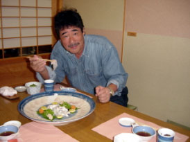 ■2004年 青森旅行記 十和田 奥入瀬編(6/26,27)■![]() 浅虫温泉 海扇閣にて(添乗員の対馬御大と)